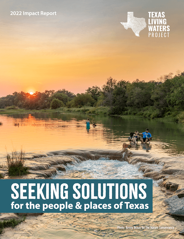 From a series of high profile studies to welcoming The Nature Conservancy in Texas, 2022 was a year of major impact and growth at Texas Living Waters. We invite you to dive into Solutions to see where we’ve been this year and where we plan to go. You can re-watch our team’s testimony at the Capitol, listen to radio interviews with our experts, and download key reports — there’s a wealth of interactivity and extra content built into this year’s report.